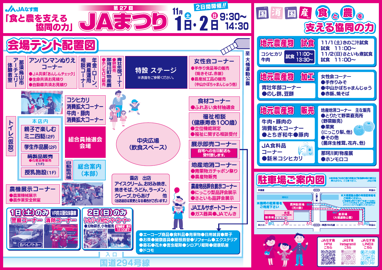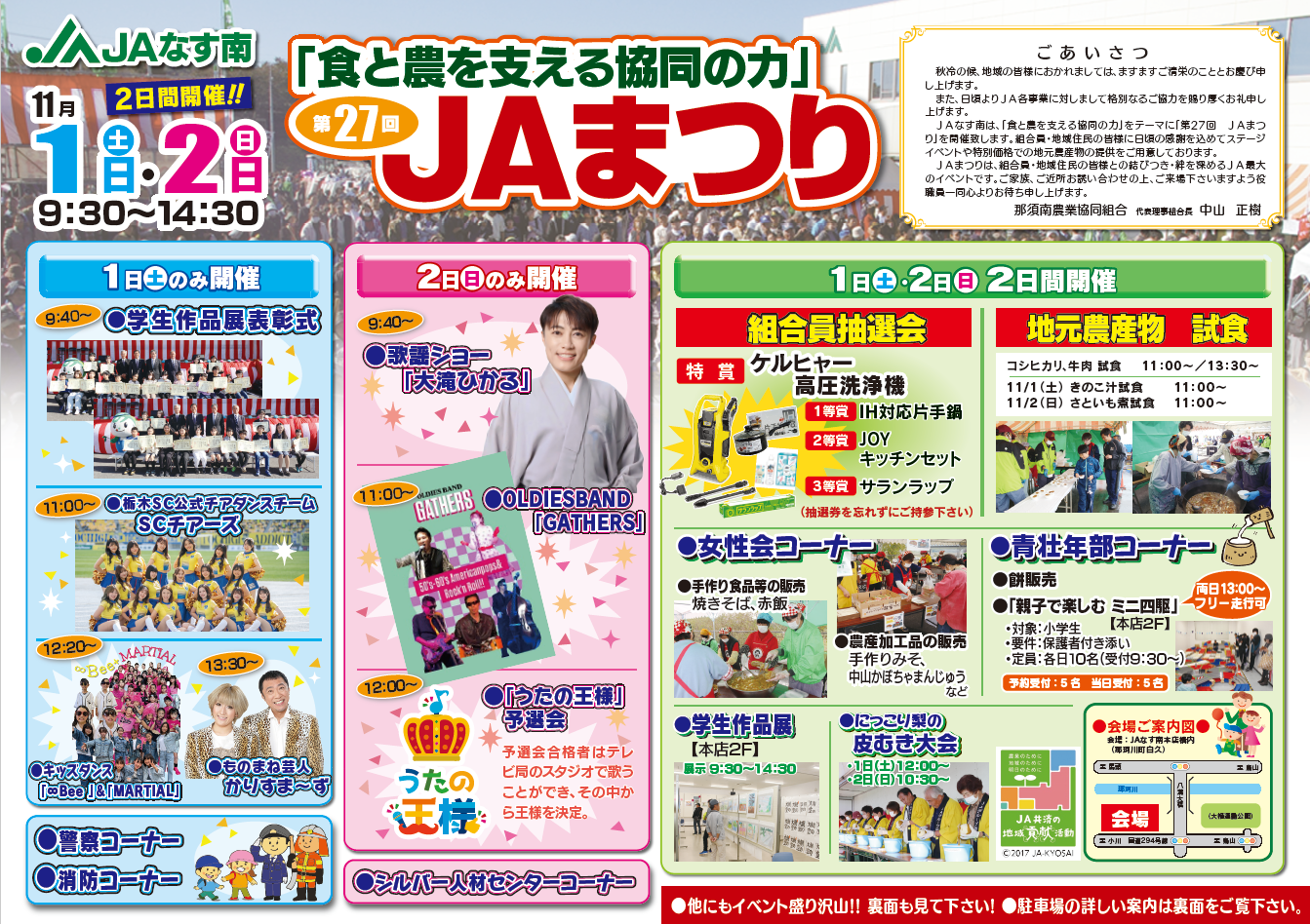 第27回JAまつりを11月1日(土)2日(日)に開催します。