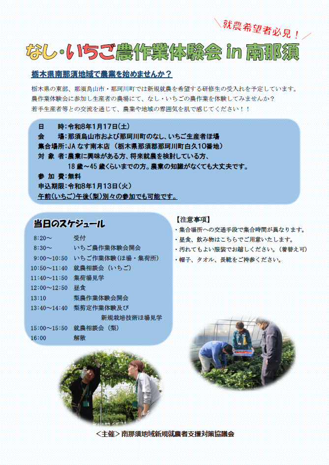 なし・いちご農作業体験会in南那須